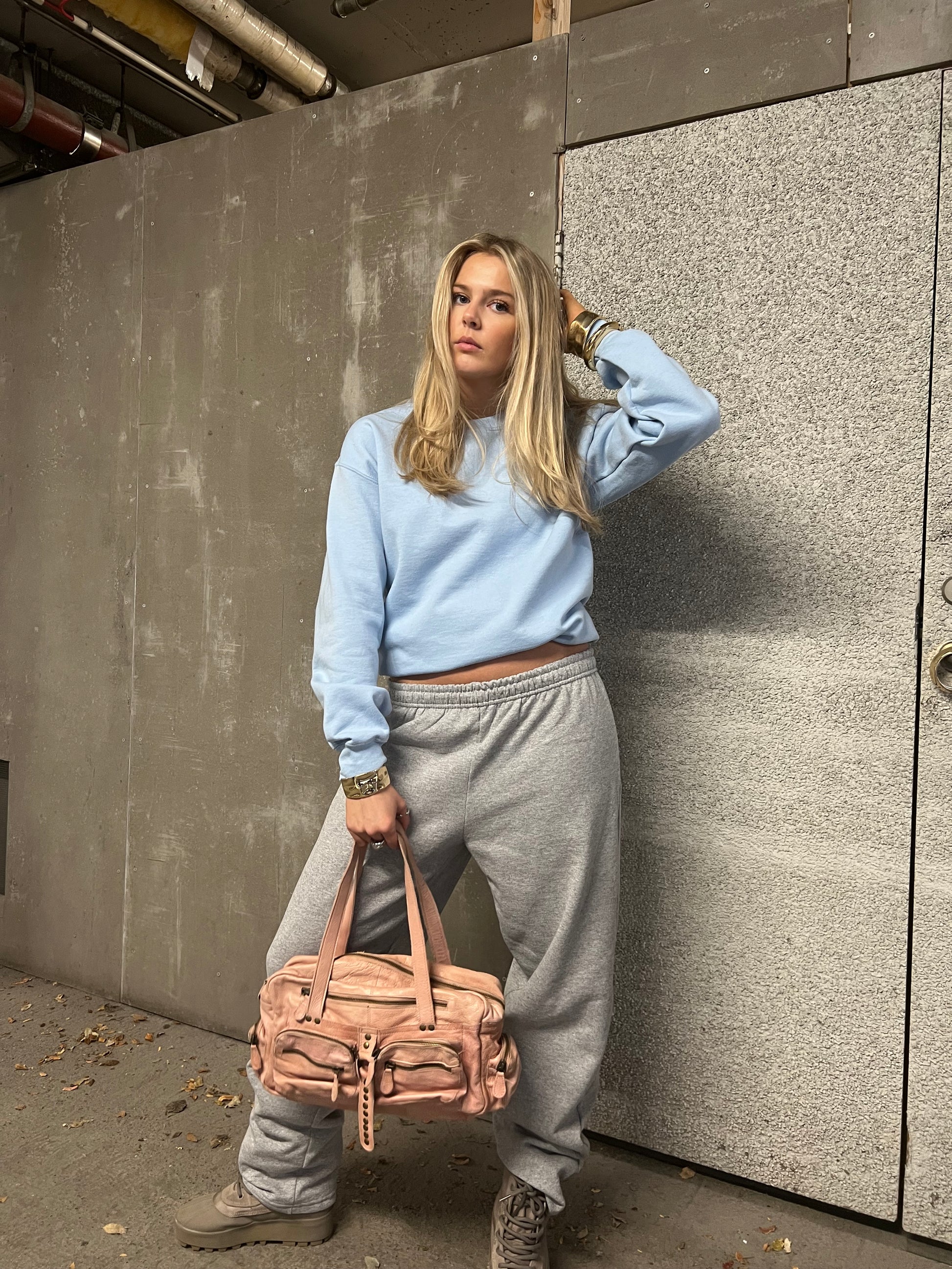 Ljósblá háskólapeysa